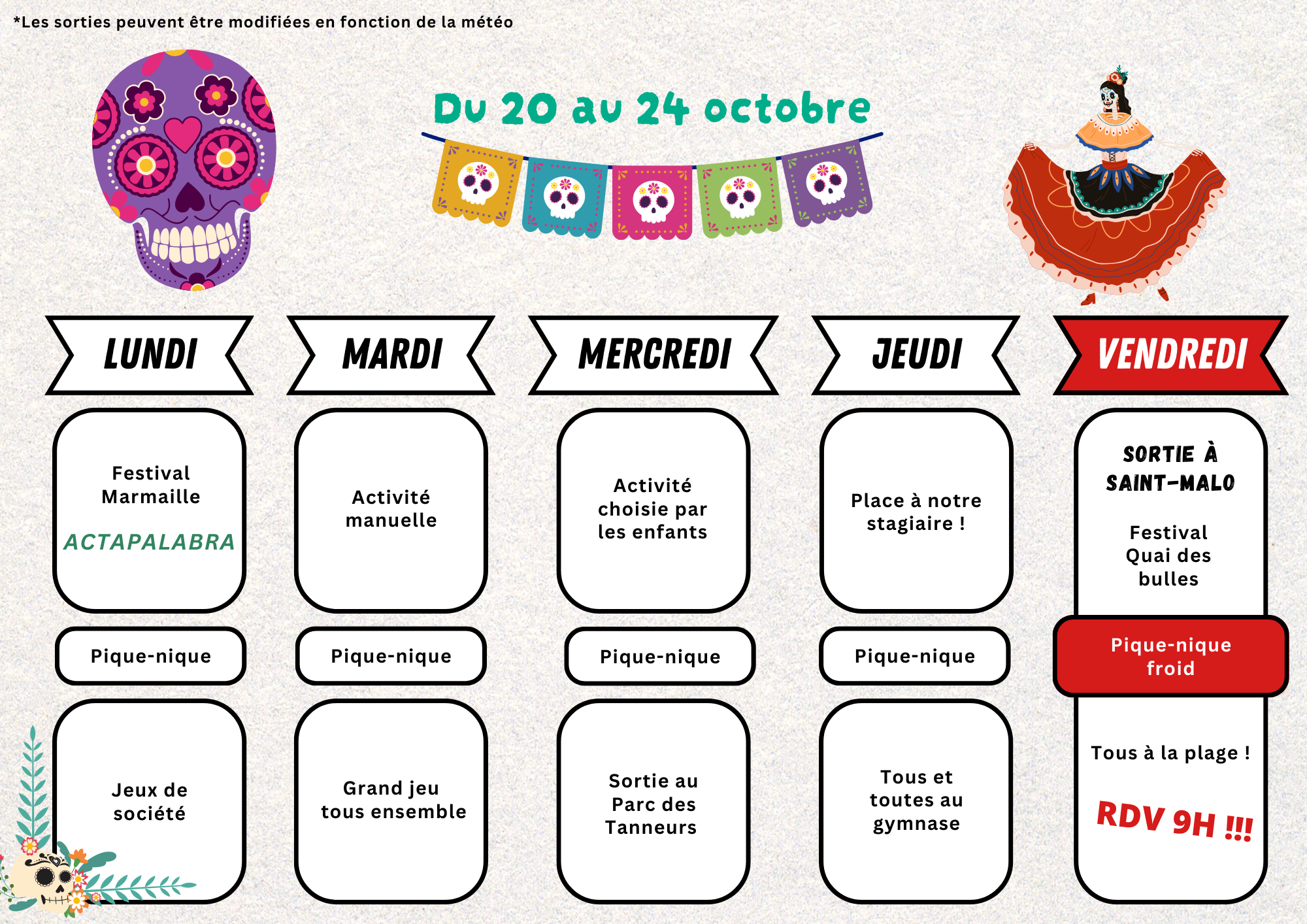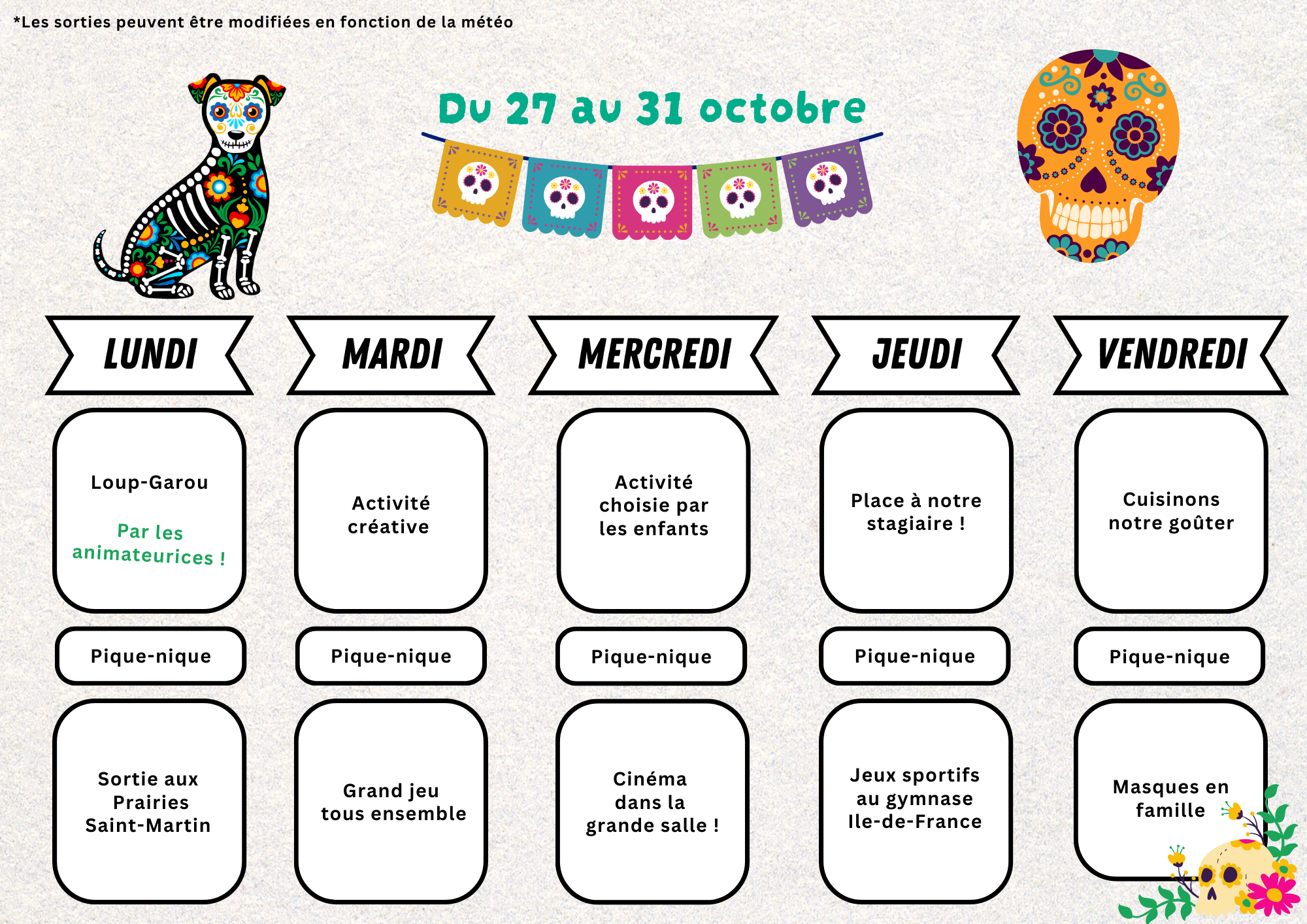 du 20 au 31 octobre 2025Inscriptions à partir du lundi 29 septembre à 14h, à l’accueil ou en ligne via GOasso.